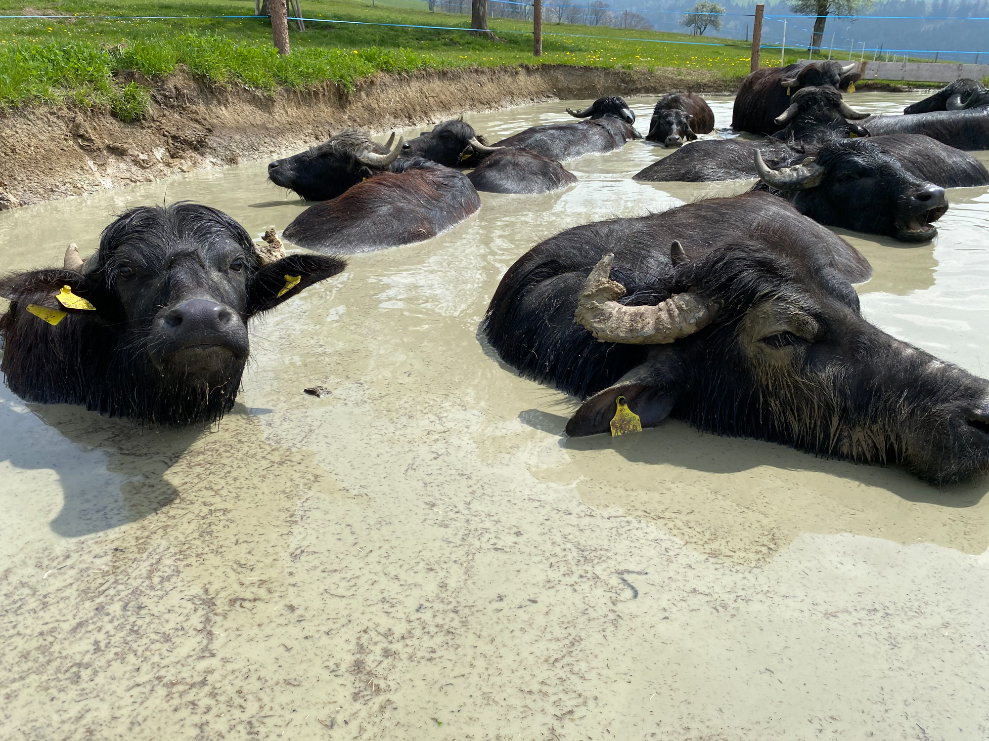 Mit der Entscheidung diese Tiere zu halten gehen wir einen Schritt zurück und entfernen uns von der kommerziellen Landwirtschaft hin zu einer naturbelassenen Landwirtschaft. Wir ermöglichen diesem Urtier einen Lebensraum, den es auch verdient. Dazu bieten wir unseren Wasserbüffeln Weidehaltung mit reichlich Fläche zum Ausleben Ihrer Naturtriebe und eine Schlammsuhle, welche sie zum Abkühlen brauchen und ihnen sichtlich viel Freude bereitet.